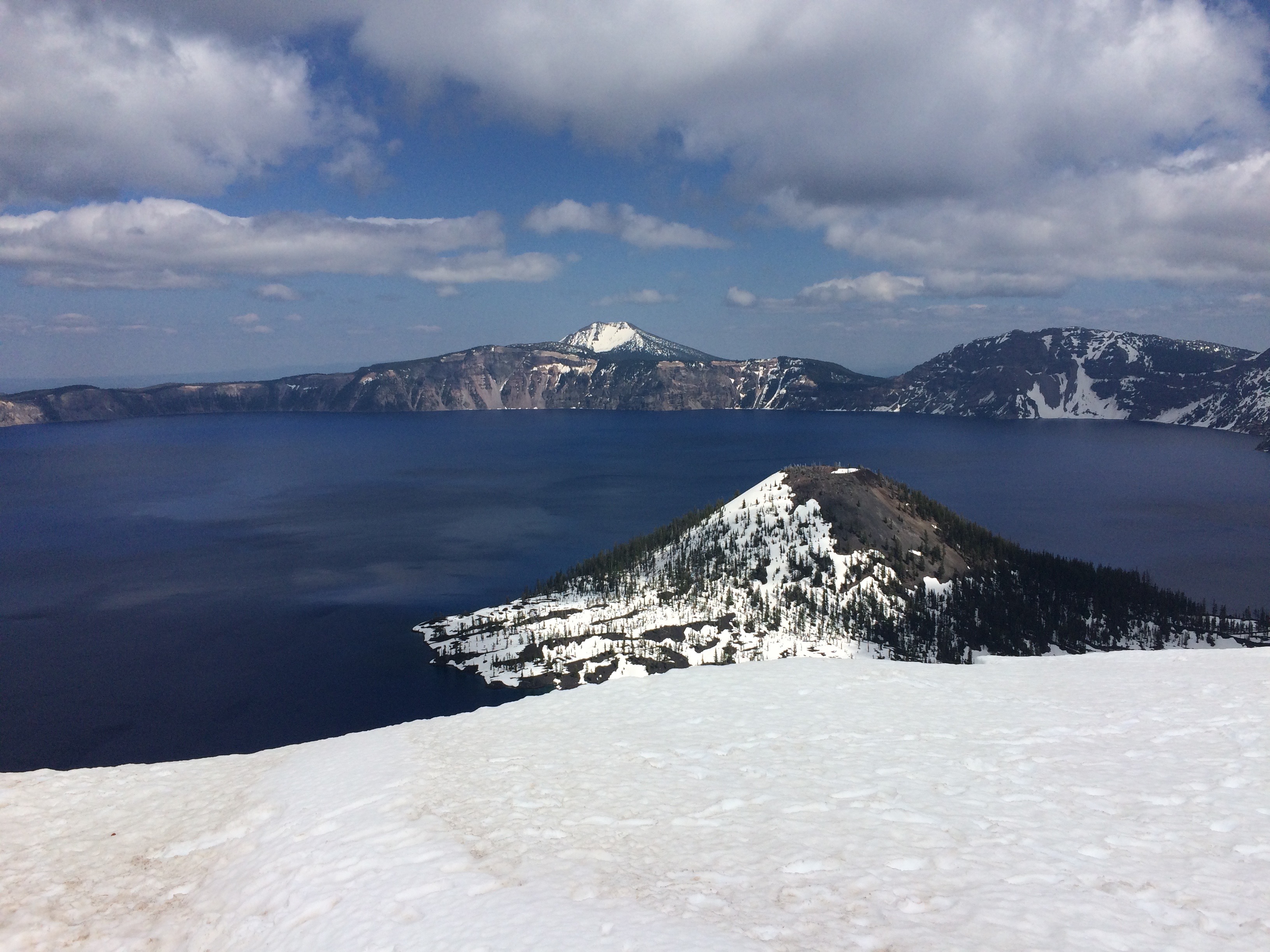 We took our time driving south, detouring slightly west to check out Crater Lake, which neither of us had been to before. I was happy to find the steep ridges surrounding the lake still dusted in snow.